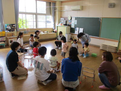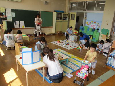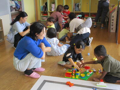 今日もたくさんの未就園児と保護者が集まりました。みんな楽しく遊びました。