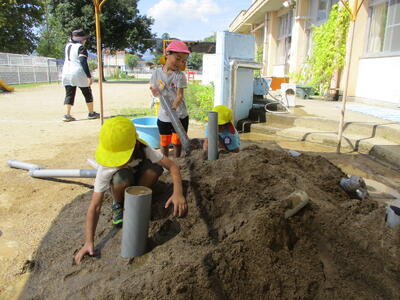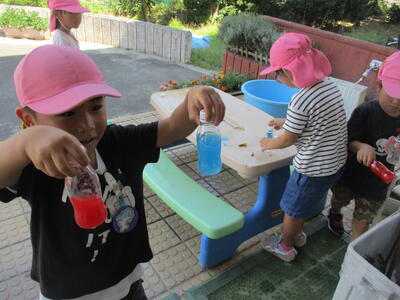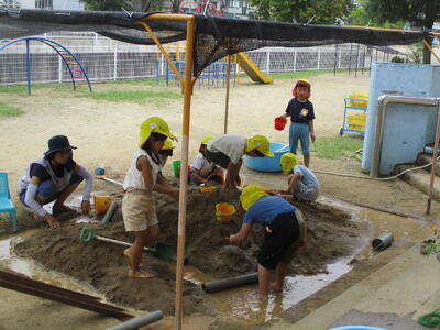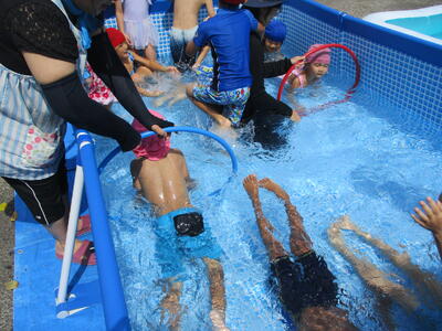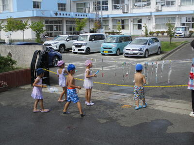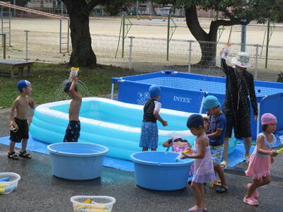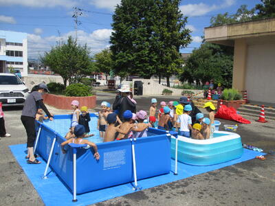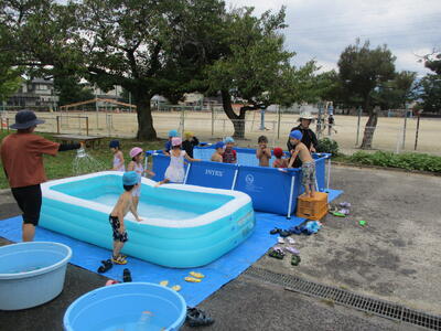 今日はプールじまいをしました。今年もプール遊びや水遊びをいっぱいしました。