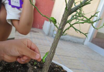 幼稚園で飼っていたアゲハ蝶が羽化しました。先週と同じように、今朝も、みんなで外に放しました。