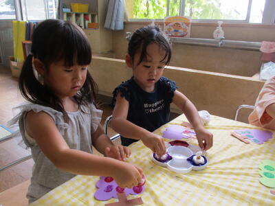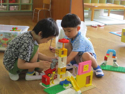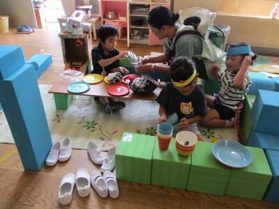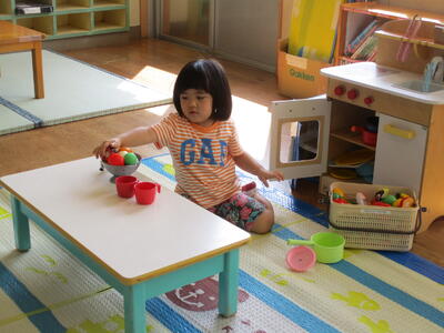 今日は、毎週火曜日に実施している「未就園児預かり保育(3歳児 たんぽぽ組)」でした。新しいお友達が増えました。今日も楽しく遊んでいます。