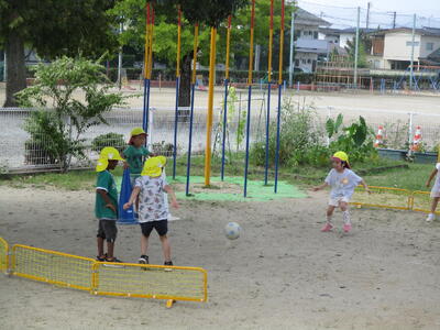 今日もみんなで楽しく遊びました。誕生会の準備をしたり、運動会の練習をしたりしました。最近サッカーがブームです。