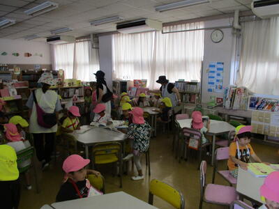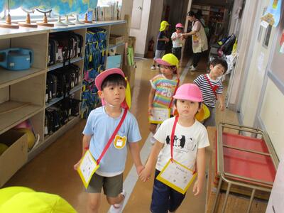 今日は、なかよしペアで清水小学校を探検しました。校長先生や小学生にあいさつした後、図書室を探しました。なかなか見つからず、小学生に聞いた子どももいました。