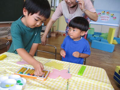 今日は、毎週火曜日に実施している未就園児預かり保育(たんぽぽ組)の3回目でした。2人の新しいお友達が増えました。今日もみんなで楽しく遊びました。