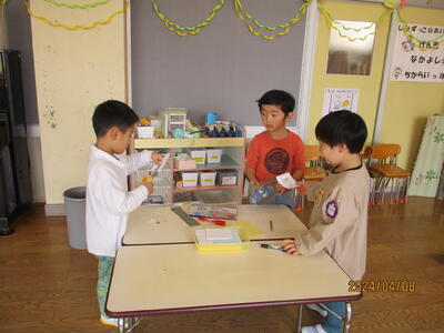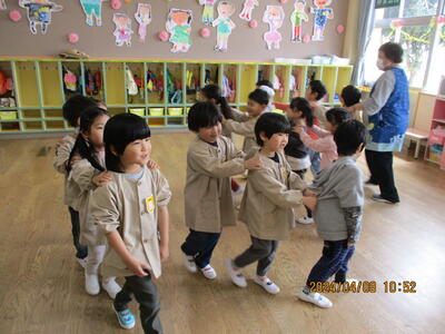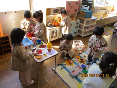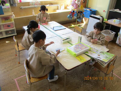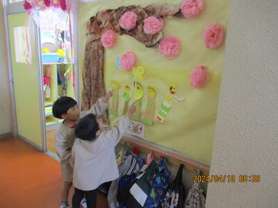 2024年4月10日 13時14分 4歳児チューリップ組の2日目の様子です。みんなと一緒に楽しく遊んでいました。