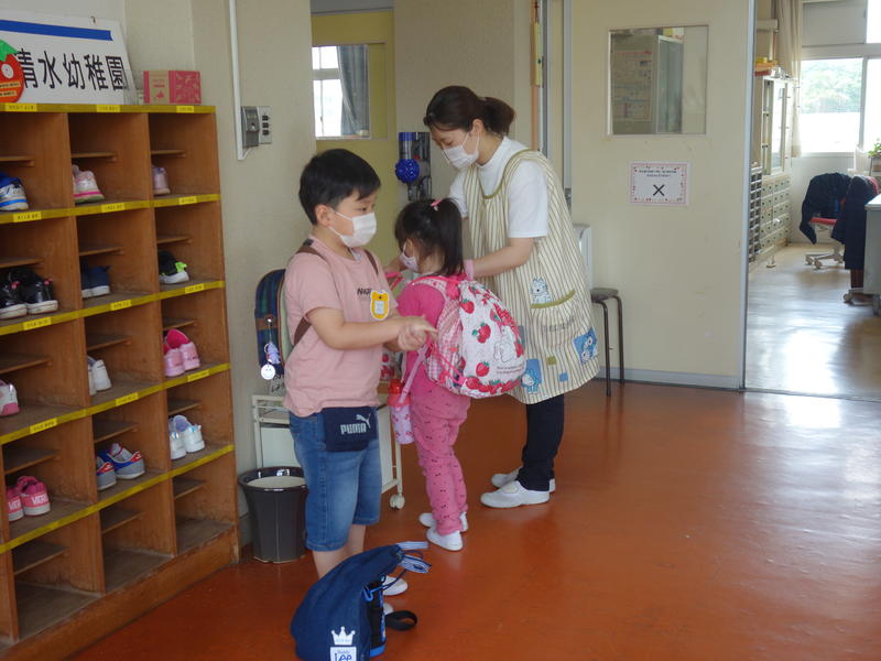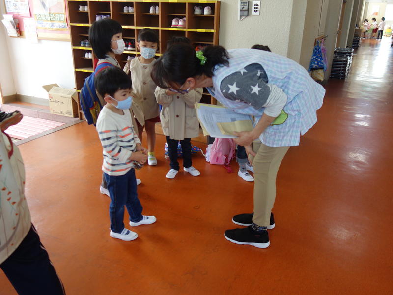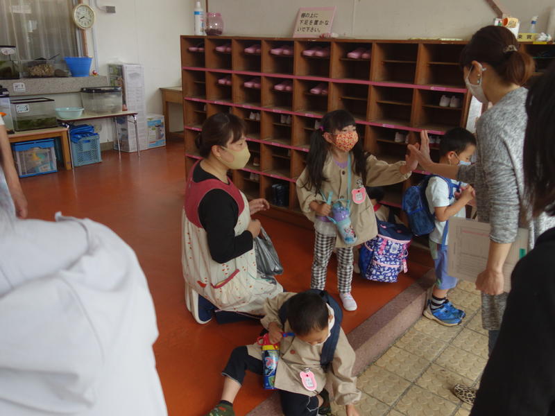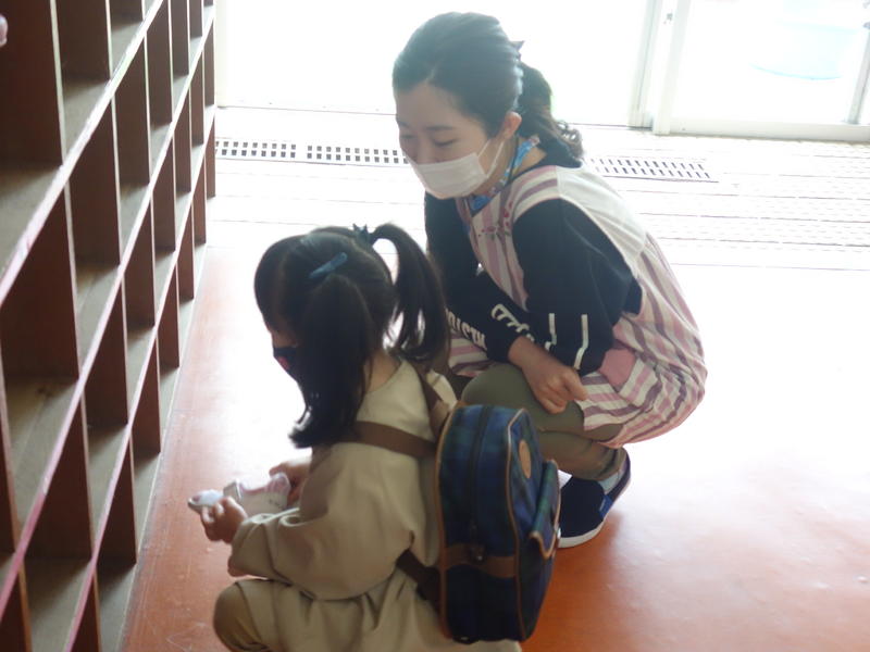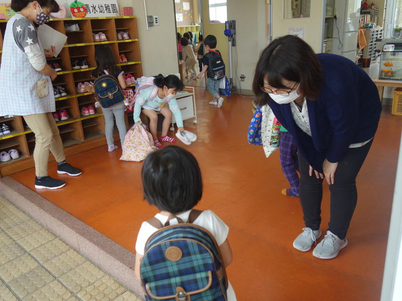 子どもたちが登園してくると、先生方は玄関に出て、一人一人に声をかけます。