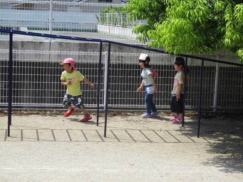 みんなで歌う、みんなで逃げる、みんなでスリルを味わう。「みんなで」を繰り返すうちに遊びが楽しくなり、クラスの友達にも意識が向いていくようです。