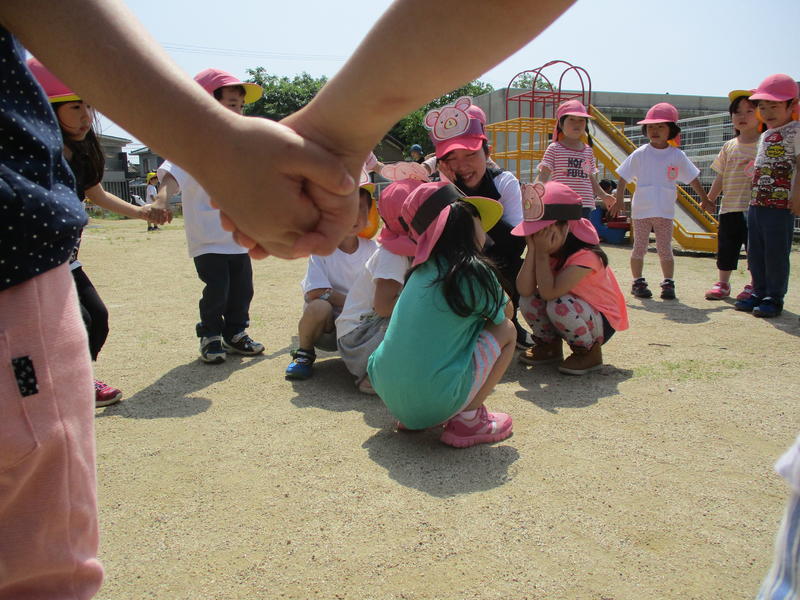 ちゅうりっぷ組では「むっくりくまさん」(鬼ごっこ)をして遊びました。