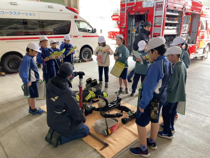 実際に仕事をしている様子や使っている道具を見せてもらったり、消防車などに乗せてもらったりしました。