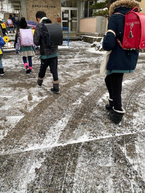 うっすらと積もった雪の日の登校でした。