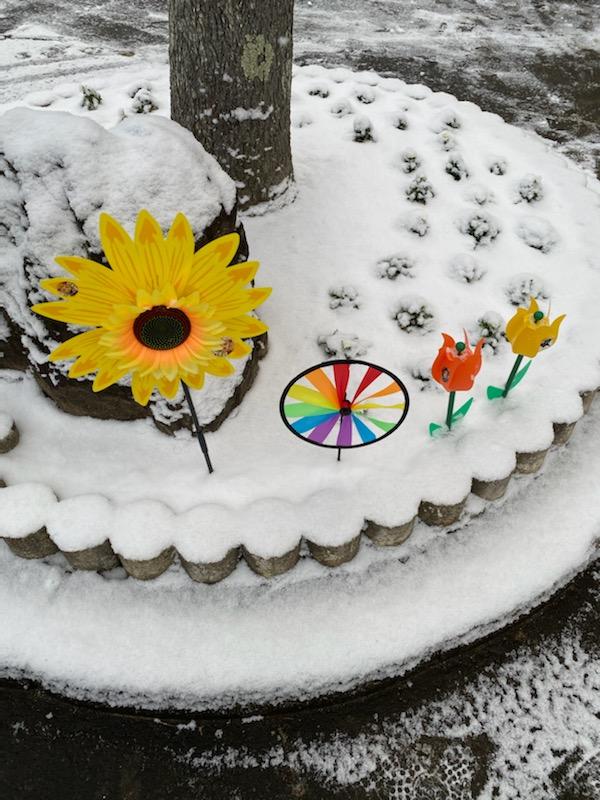 あちらにもこちらにも、ここにも雪が降り積もっています。