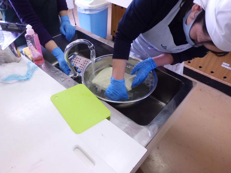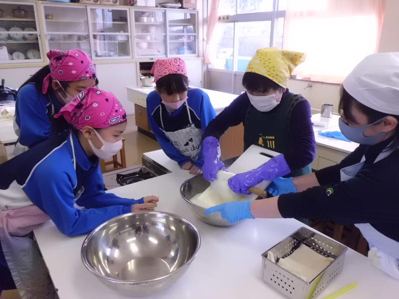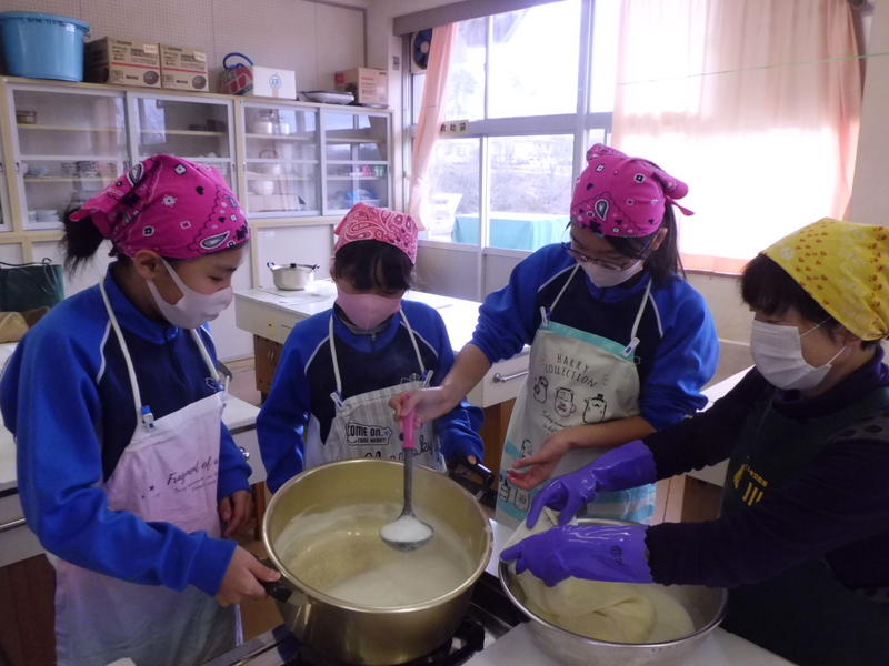 12月4日(金)5年生が豆腐つくり体験を行いました。JAの職員の方と、下川崎地区のJA女性部方2名を講師に招いて行いました。
