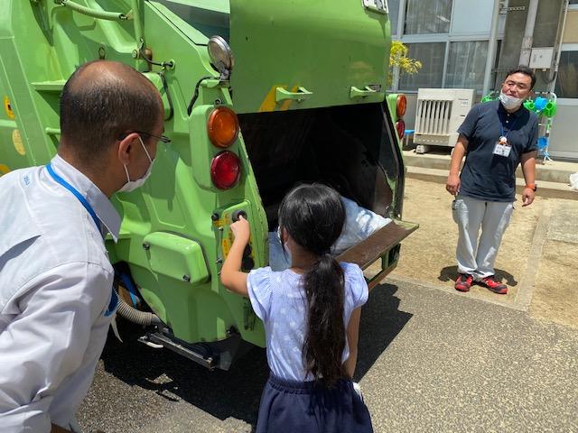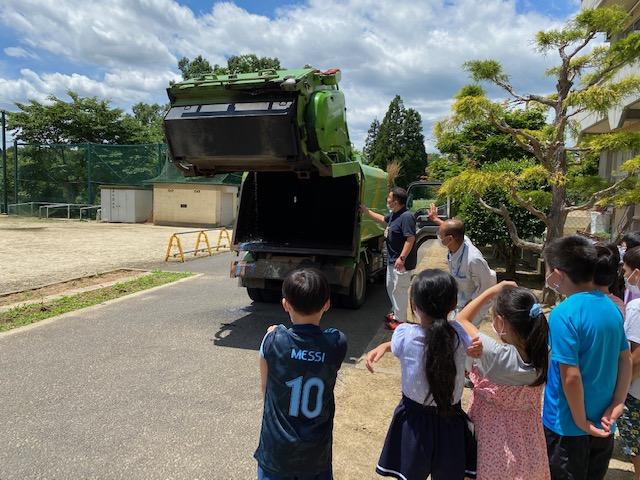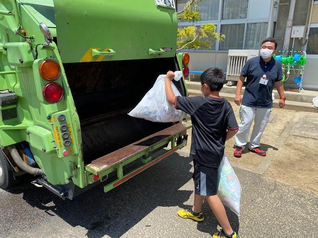 と思ったら、ごみ収集車でした。私たちのごみを持って行ってくれるそうです。