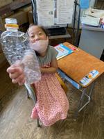 ペットボトルはキャップとラベルをはがして、足でつぶして、ぺったんこにするんです。ラベルとキャップは「プラスティック製容器包装」の仲間なので、ペットボトルとは別に捨てるのですよ。 (`・∀・´)エッヘン!!