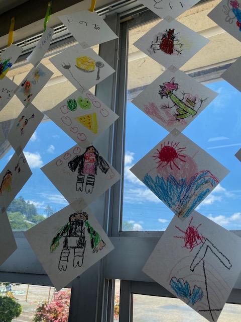 ほほう。まどのほうに いっぱい さがっているね。なにを つくったの。