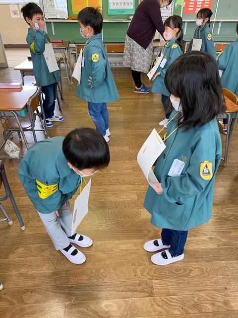 はじめは、おたがいのじこしょうかいカードがくっつかないあいだをあけて、「ソーシャルディスタンス!」のあいことばからスタートです。