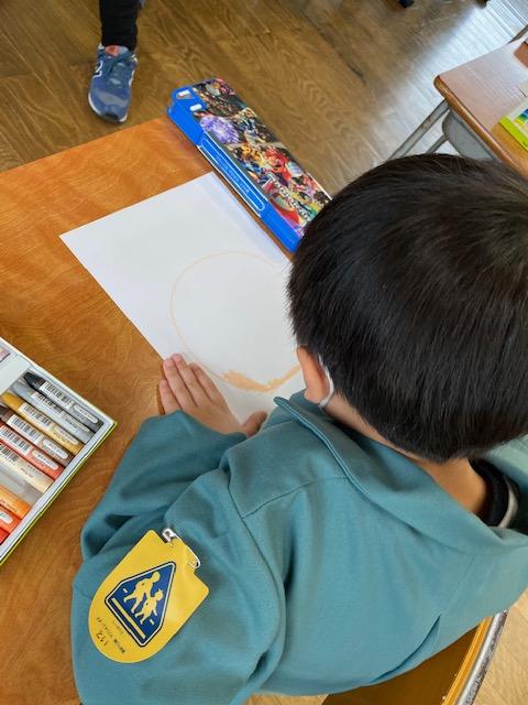 きょうは、じぶんの おかおを かいて みましょう。かおには なにが あるかな。