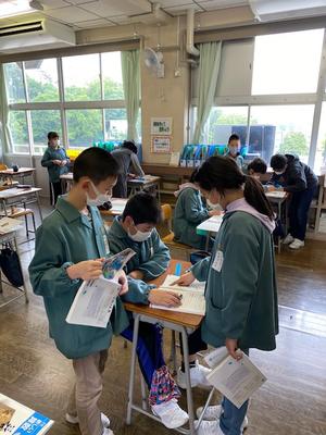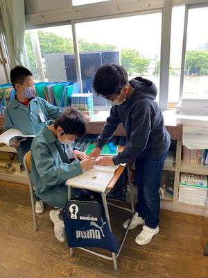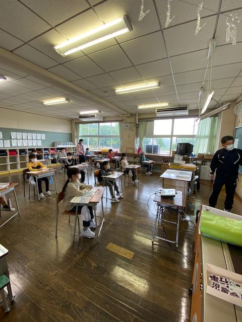 2020年5月20日 10時32分ソーシャルディスタンスは新しい生活様式の中で忘れてはいけない行動です。6年生はこれまでの学び合いをソーシャルディスタンスを意識して行おうとしていました。
