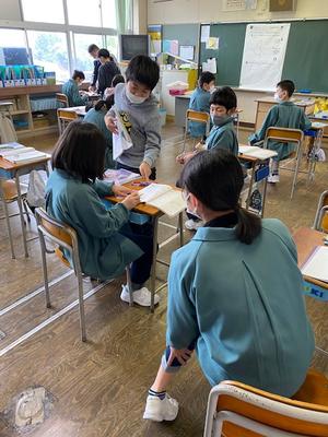 ソーシャルディスタンスは新しい生活様式の中で忘れてはいけない行動です。6年生はこれまでの学び合いをソーシャルディスタンスを意識して行おうとしていました。