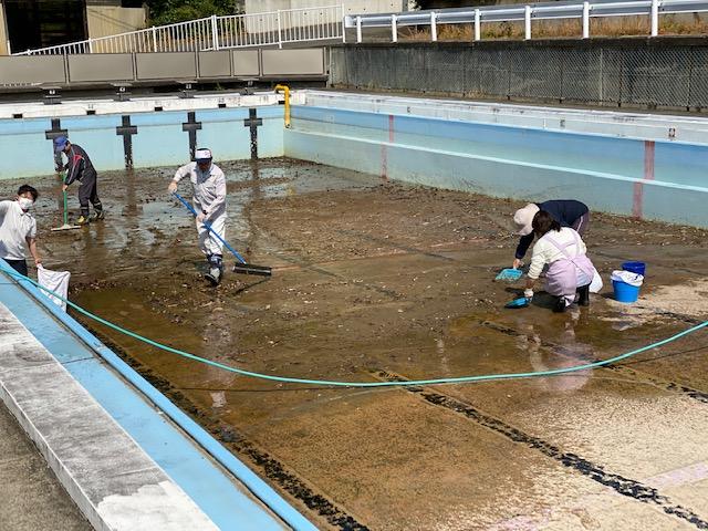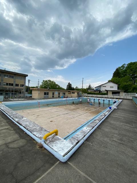 こんなにきれいになりました!このあと乾かしてから、水を入れますよ。下小のみんな、プールを楽しみにしていてね