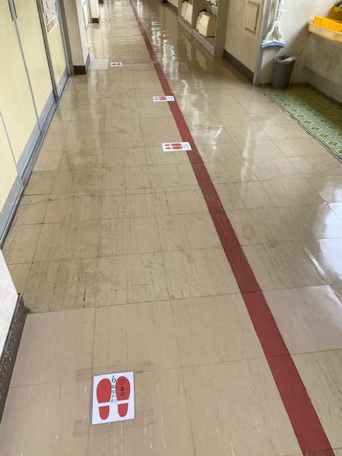 水を飲むときにも、新型コロナウイルスに気を付けて、間隔をあけて並びます。