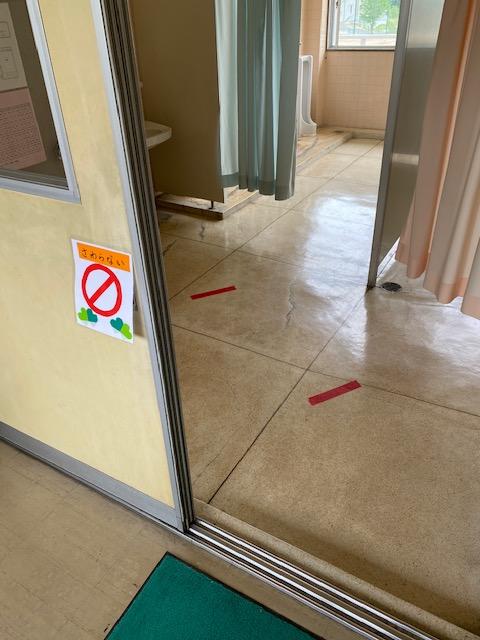 トイレにも、とまってまつ線がありました。トイレの戸はあけしめせず入りましょう。