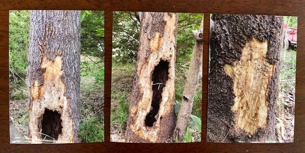 学校近くの林にこんなあとがありました。木の皮をはがした犯人はだれ?