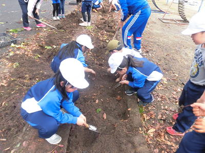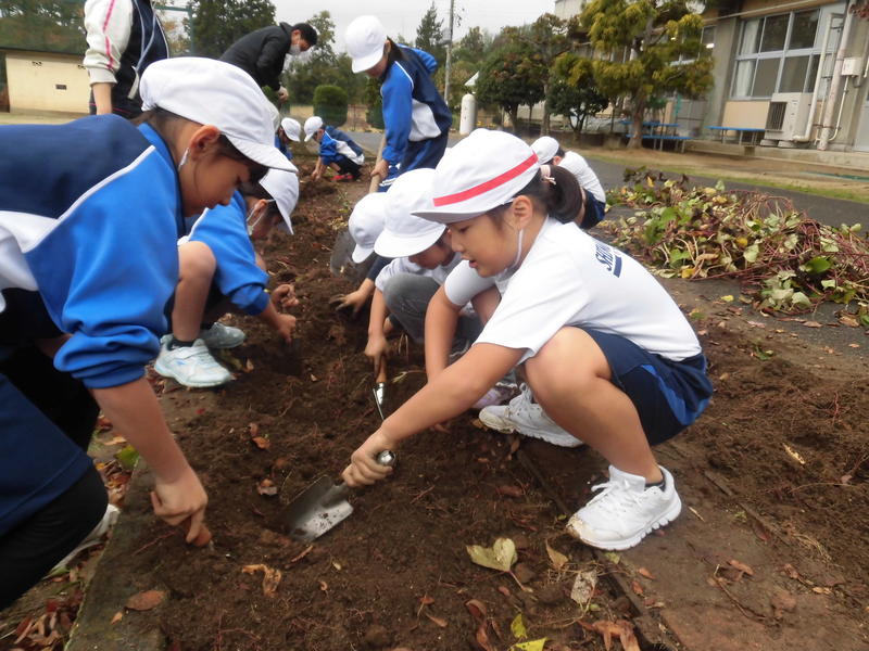 サツマイモを傷つけないようにやさしく土を掘ったり、協力してサツマイモのつるを片付けました。