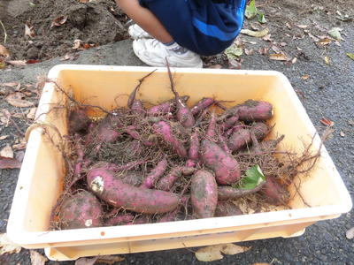 5月に苗を植え、1・2・3年が育てていたサツマイモが大きくなり11月11日に収穫をしました。