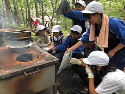 2019年6月27日 12時51分6時起床。バイキングでの朝食後、森の中で野外炊飯です。お天気も大丈夫そう!