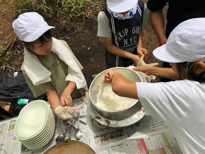 6時起床。バイキングでの朝食後、森の中で野外炊飯です。お天気も大丈夫そう!