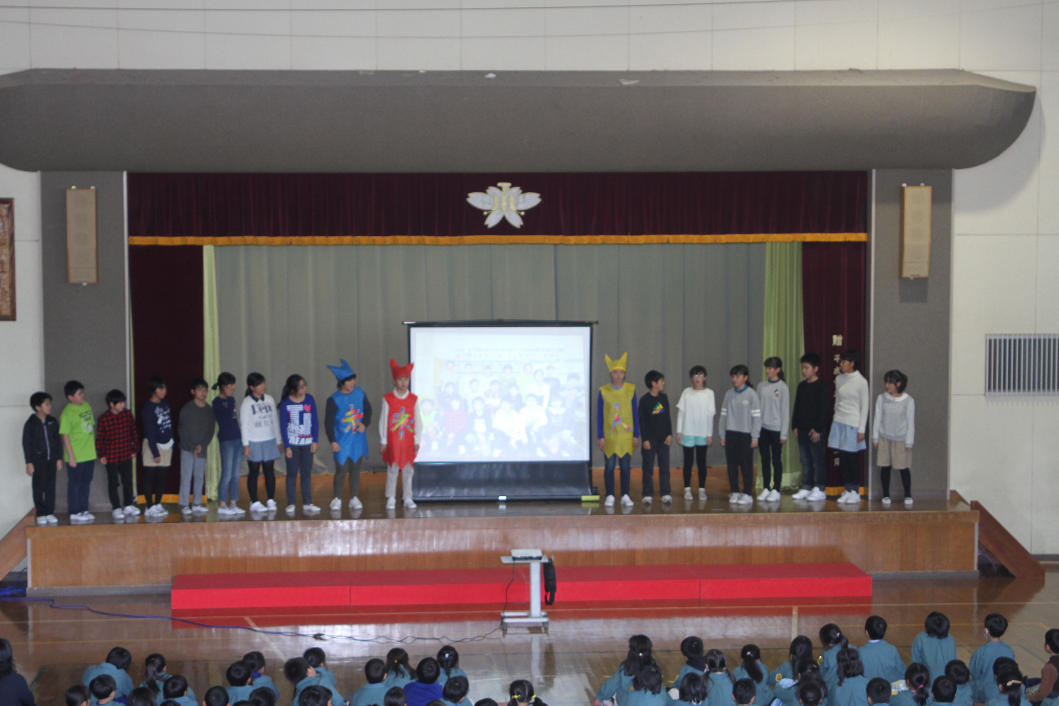 全校合唱では下川崎の歴史・風景、地域の優しさや学校の仲間のことを歌にした