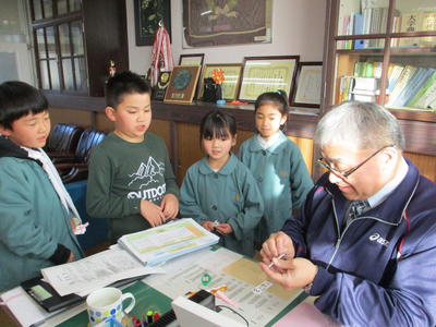 緊張の面持ちで校長室をノックする2年生・・・満面の笑みで迎える校長先生。