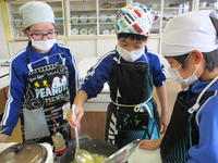 3班に分かれ、冬が旬の野菜を使ったお味噌汁をそれぞれに工夫しながら作ります。