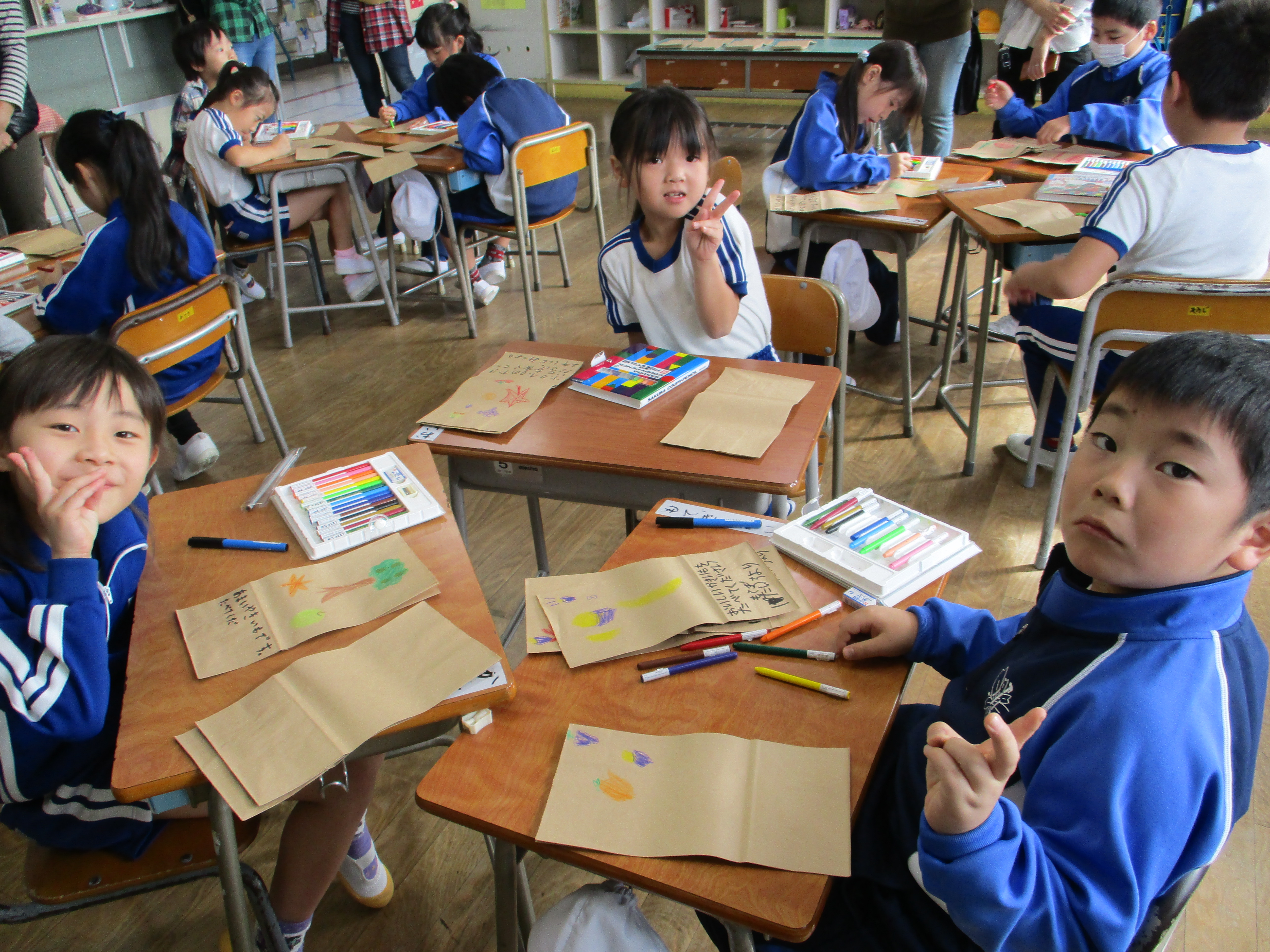 1・2年生は焼き芋を入れるメッセージ付袋の担当です。