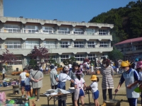 この日は,全校生がお弁当。一年間過ごしてきた若竹班(縦割りの班)で,6年生を囲んで楽しく昼食会をしました。笑顔にあふれたとってもすてきな時間でした。