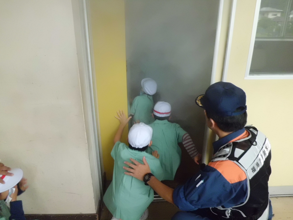 ある低学年児童の子は,棒につかまりながら降りてくるところで,「こわいなあ,だいじょうぶかな。」ととまどっていると,上級生が「こうするんだよ。」と教えてくれたり,