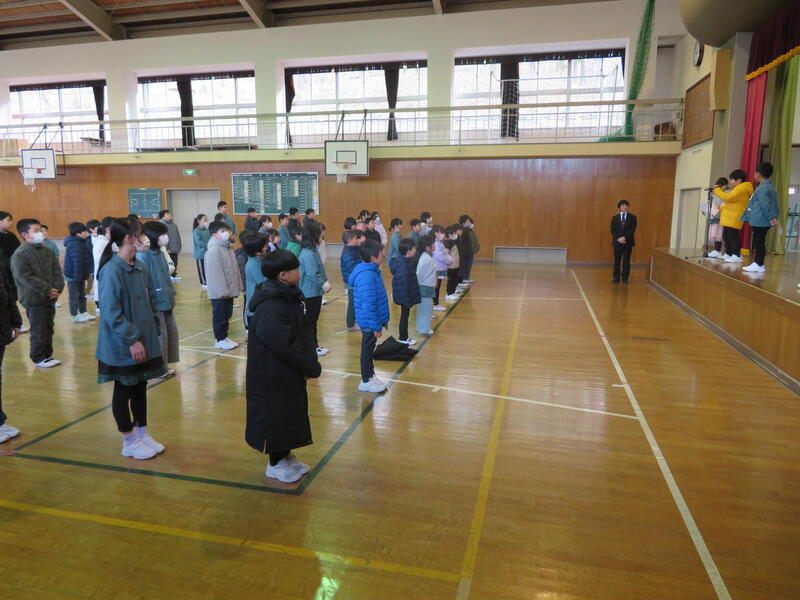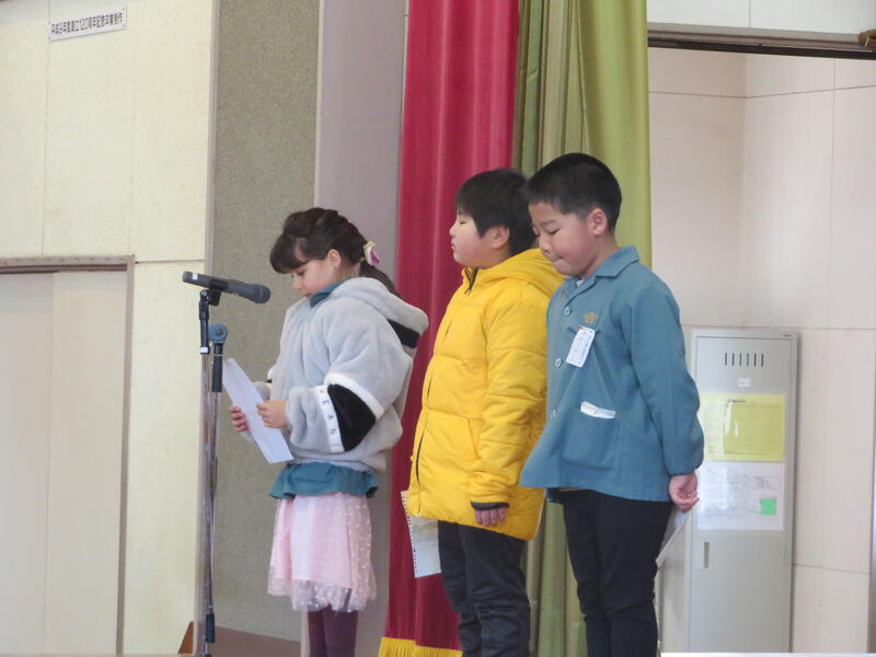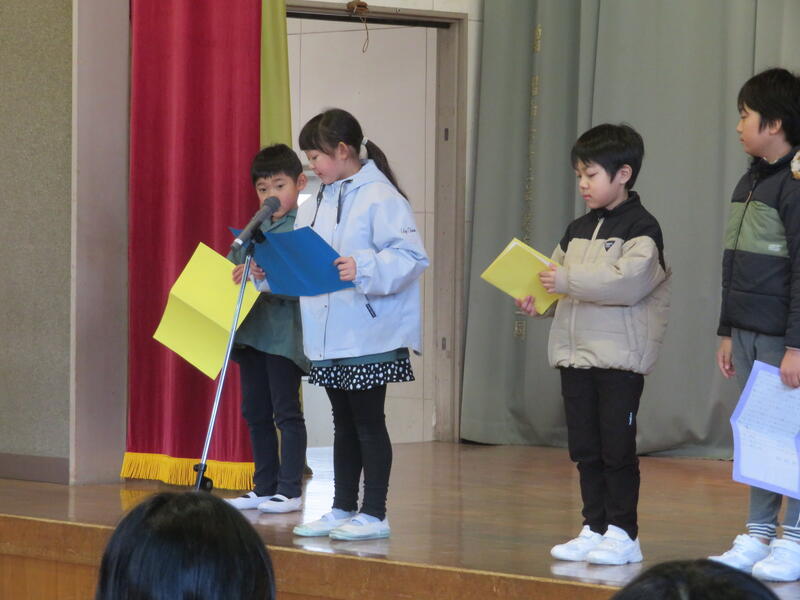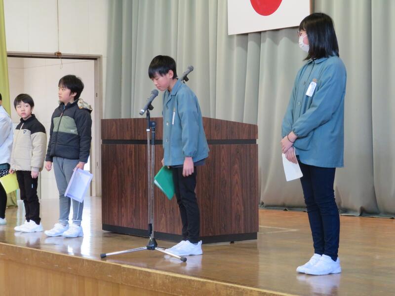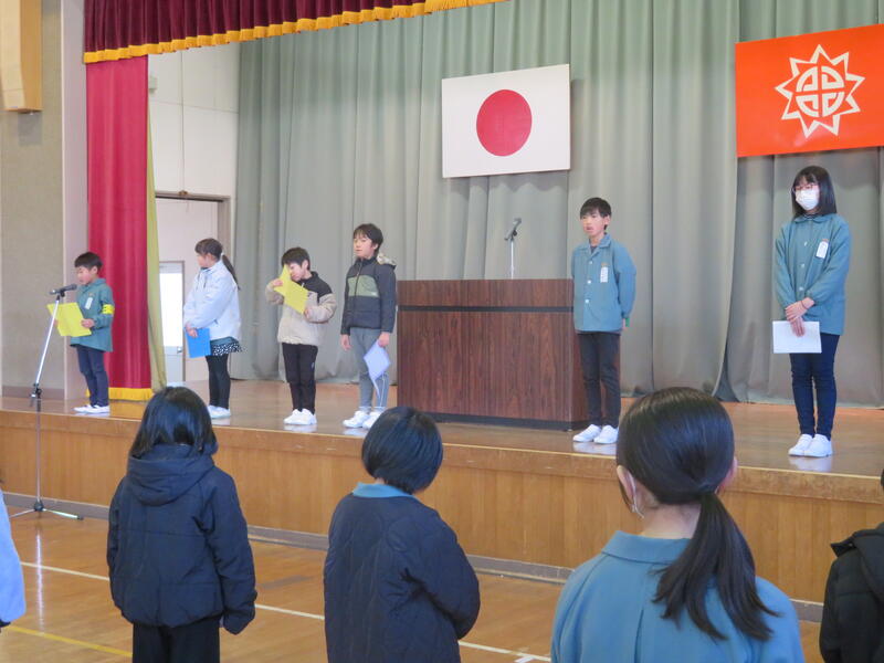 各学年の代表が冬休みの思い出と3学期の目当てを発表しました。