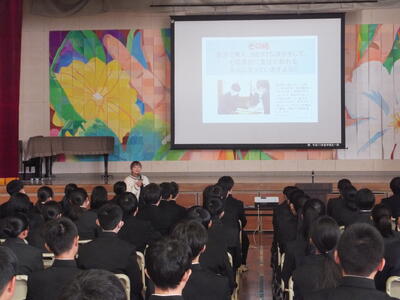 3年生のみなさんは真剣な眼差しで講師の先生の話を聞いていました。