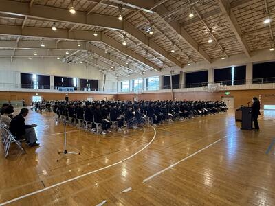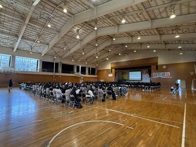 多くの保護者に参加していただき、午後から体育館で「進路説明会」がありました。