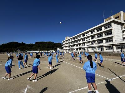 学年によって、ネットの高さを変えたり、サーブのルールを工夫したりして楽しめるようになっています。
