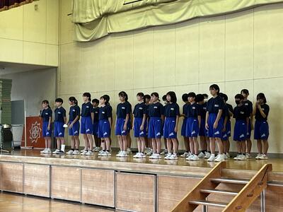 2学期の始業式では、全校生の前で練習の成果を発表しました。