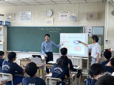 昨日から本校に着任しました新しいALTのレイ先生が早速授業を行いました。