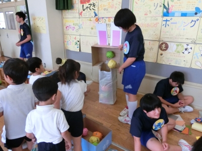 2年生の家庭科で幼稚園訪問が始まりました。本日は福島ルンビニー幼稚園たんぽぽ組32名が本校に来校し、2年1組の生徒と交流を持ちました。園児たちはもちろん中学生も楽しいひとときを過ごしました。