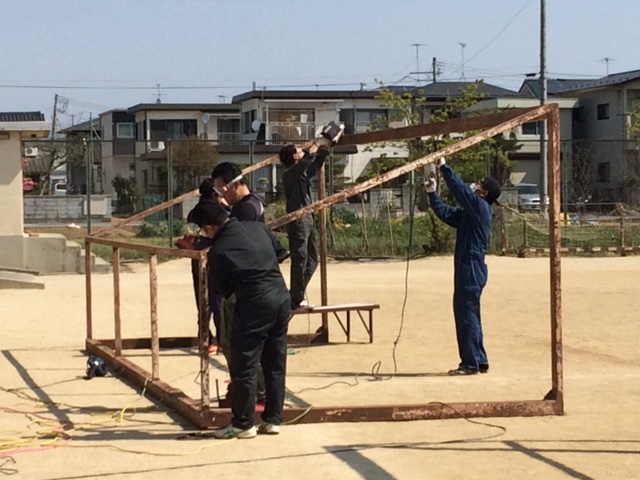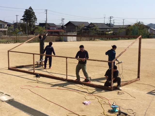 4/30磨き作業、5/4塗装、5/7ネットを張ることで、サッカーゴールが