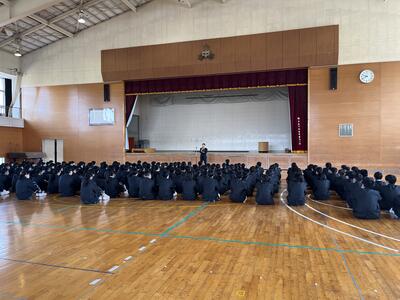 今日は、各学年で体育館に集まり、学年集会が行われました。