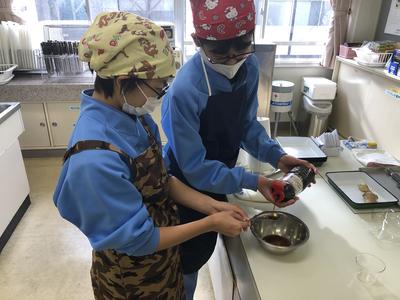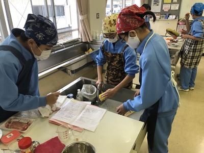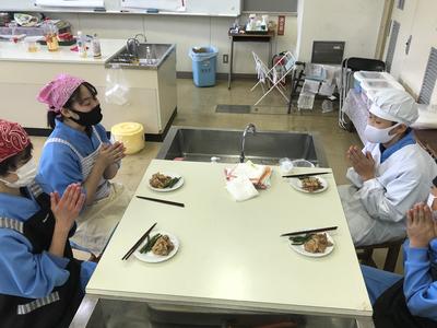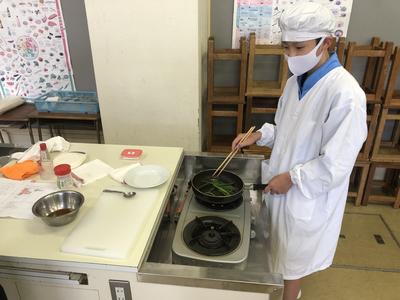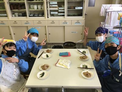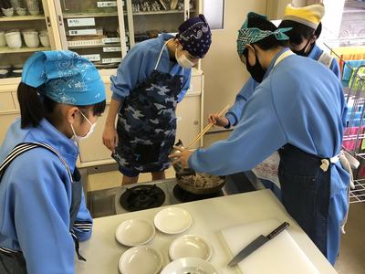 2020年12月1日 12時50分1年生が調理実習を行なっていました。