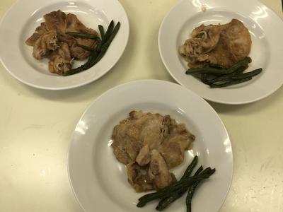 いんげんのソテーも、周りの班の様子を見ながら炒める時間を気にしていました。