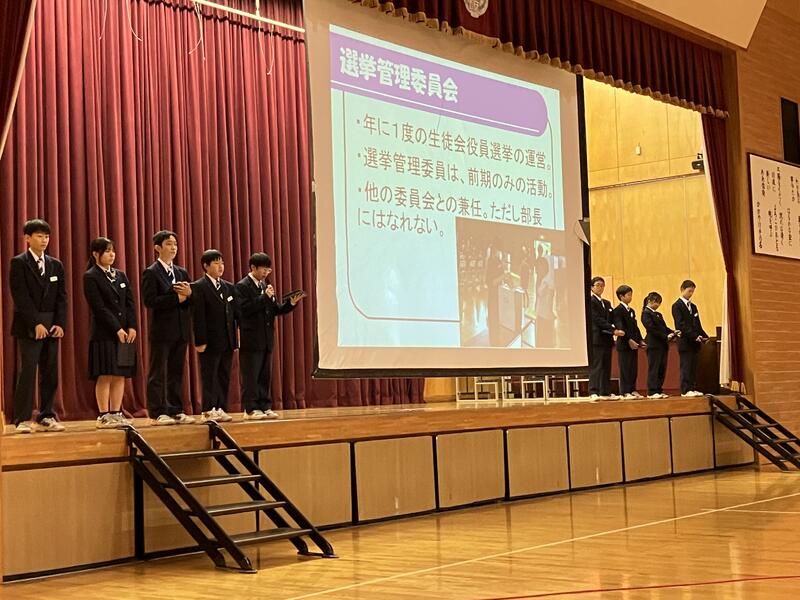 授業や部活動の様子を見学し、生徒会本部役員からのスライドを交えた中学校生活の説明に耳を傾けました。