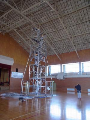 3月3日(水)、体育館は業者さんが入り、天井に取り付けてある水銀灯の修繕作業をやっていただきました。足場を作りながら一つ一つ点検する大変な作業でした。