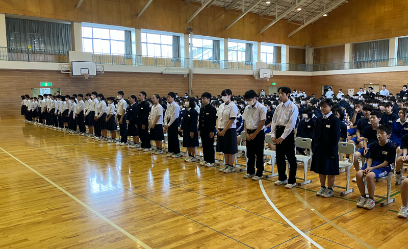 30日には、全校集会が行われ、新人戦支部大会等の表彰や生徒会役員・学級委員等の任命式が行われました。